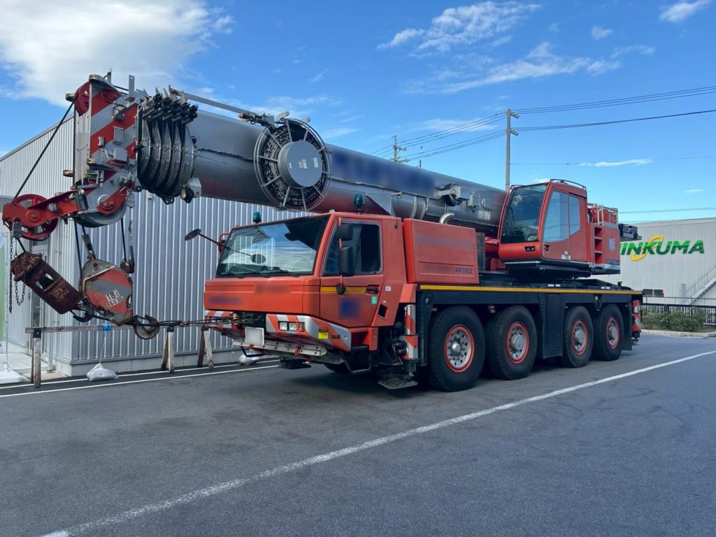 そんな中、現場にやってきたのが主役の100tオールテレーンクレーンです! この「オールテレーン(All Terrain)」は「全地形型」という意味で、文字通り「どこでもいける」頼もしい重機です。