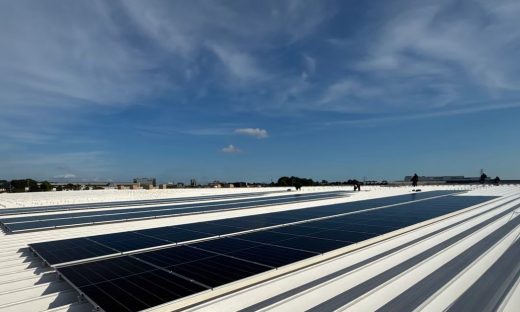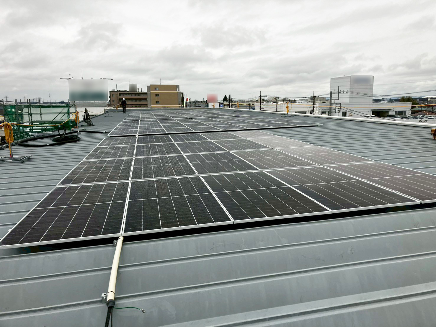 【施工事例】栃木県宇都宮市 産業用屋根上太陽光 AC66.6kW / 高さ制限2.1mをキャタピラ型高車で克服